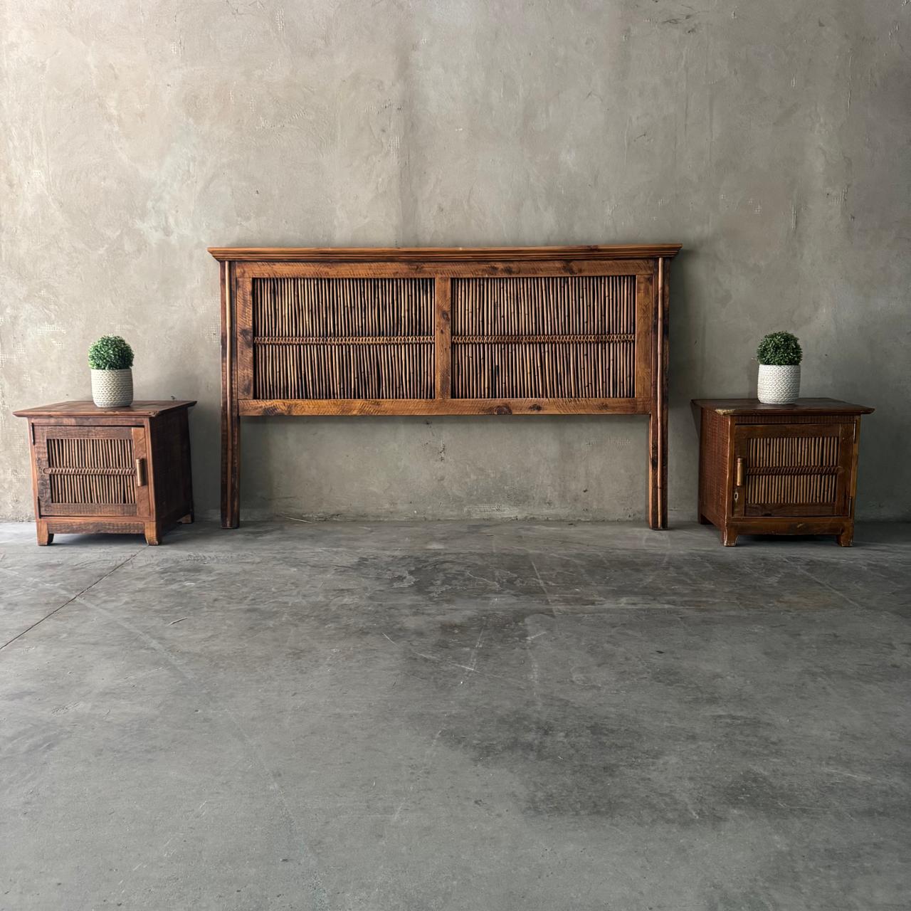 KING RATTAN CANE HEADBOARD & PEDESTAL SET